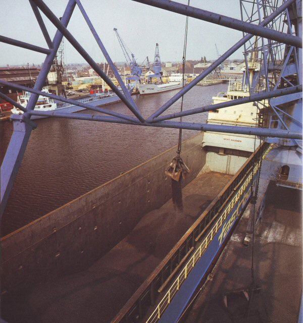 Goole established itself, well over 100 years ago, as one of the country's premier coal-handling ports. Goole still ships coal, coke and smokeless fuels in large quantities direct from road, rail or barge transport. Specialised facilities for these operations include two 52-tonne compartment boat hoists, a rail wagon hoist and 50-tonne and 40-tonne heavy duty cranes. These appliances can also handle a range of öther bulk commodities and are supplemented by twelve 7½-tonne grabbing cranes and high-capacity shiploading conveyors.