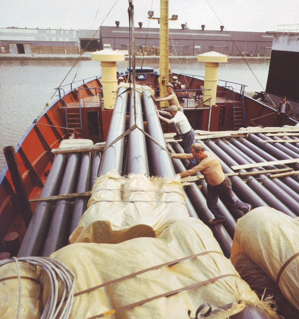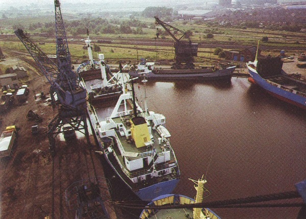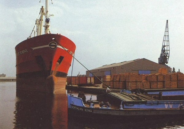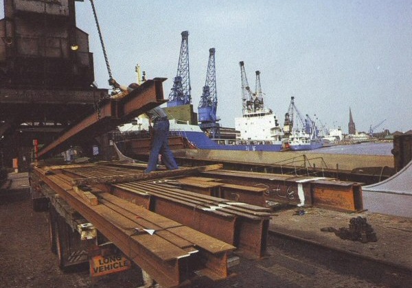 The charter business also flourishes at Goole. Iron and steel of all kinds, packaged timber and timber products, bagged fertilizers and chemicals in drums, fresh fruit and vegetables are 'bread and butter' business to the port's dockworkers who are proud to display the traditional stevedoring skills which have disappeared elsewhere.