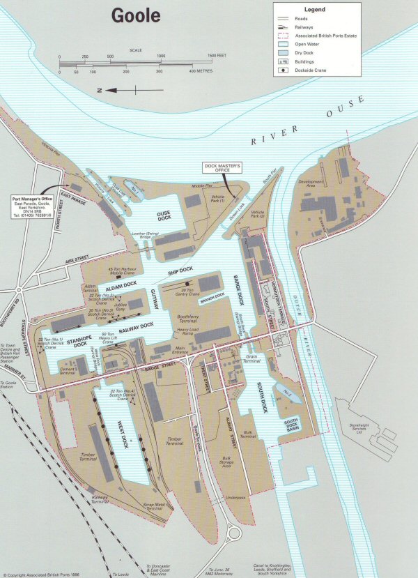 Associated British Ports' Port of Goole lies at the heart of the UK's transport network, with immediate access to major motorways, rail and inland waterway links. As the east coast's most inland port, located some 80km from the open sea on the River Ouse, Goole offers its customers easy access to all areas of northern and central Britain. The M62 and M18 motorways are within five minutes' drive of the port estate; the port's rail terminals are directly linked to the east coast rail network and the Aire and Calder Canal leads directly from the port to the major industrial centres of west and south Yorkshire.