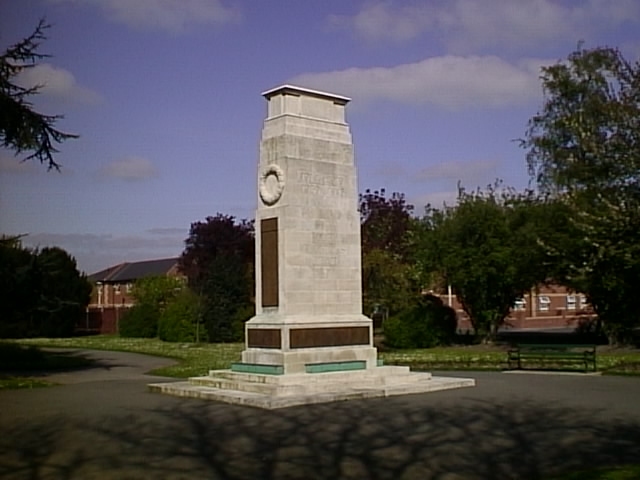 There are two monuments commemorating the two World Wars. The first is the Cenotaph in Bartholomew Gardens. This is an 18-foot replica of the Cenotaph in London and is the scene of the Remembrance Service each November.