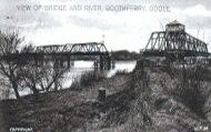 Horses (and mighty stagecoaches) can cross rivers by ferry. The last of the Aire railway bridges was built in 1912 for the Selby-Goole line between Rawcliffe and Newland. The line closed in 1964 and the bridge was demolished and only its be-graffitied supports remain. It is a scene of desolation. But the great and famous railway bridge is that across the Ouse near Goole. This was built with great difficulty in 1868 to carry the new line to Hull. When it was built it was one of the largest swing bridges in Europe and a great marvel.
