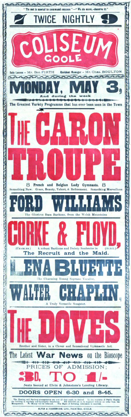 My father (C.W.E. Tomlinson) was born in the dressing room at the Theatre Royal in Adam Street as my grandfather worked backstage. He moved to the Coliseum and was stage manager there and later became projectionist. There is a copy of my father's early life in Goole lodged in Goole Library.