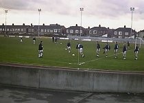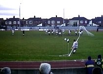 The Victoria Pleasure Ground is a shadow of its former self. There is only one stand and a rather decrepit running track around the pitch. Notice how people living on Dunhill Road are watching events from their bedroom windows and the little group of kids playing with a football by the side of the pitch. If you're lucky you'll hear music played from the tannoy. If you're unlucky you'll just about hear the music from a ghetto-blaster at full volume.