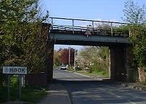 The most popular pub in Hook, the Blacksmiths Arms, is famous for its good food, weekly pub quiz and a children's playground at the back which is great fun when drunk. This pub (as the name suggests) was previously a smithy for the farm horses. The other village pub is the Sotheron Arms, formerly a stabling inn for riders taking the ferry over the Ouse to Howdendyke. Heading back to Goole along Hook Road, you pass under the Goole to Hull railway where it crosses the river with a huge triple-span bridge. The river can be quite wild here and the bridge has been struck several times by passing ships.
